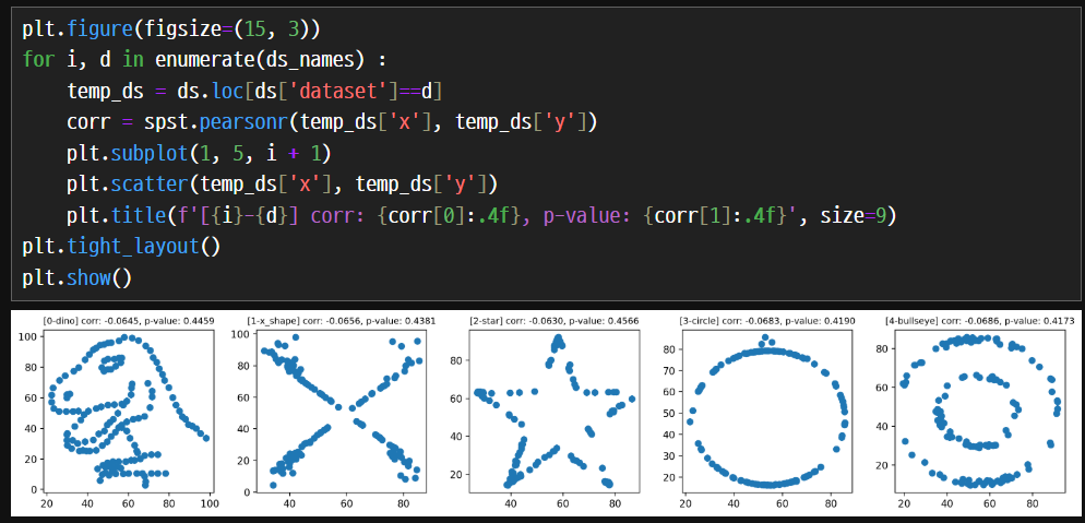 시각화를 해보면 패턴과 의미를 가진다. 수치화해서 하나의 숫자로 요약하는 데는 많은 장점이 있지만, 한계도 존재한다.