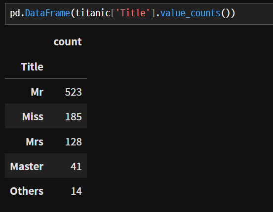 value_counts() : 범주형 변수에 포함된 범주값 각각의 개수를 카운드