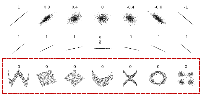 상관계수는 방향이 아닌 폭을 의미한다. 상관계수가 0이더라도 의미를 가질 수 있다.
