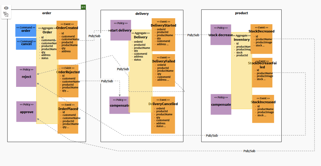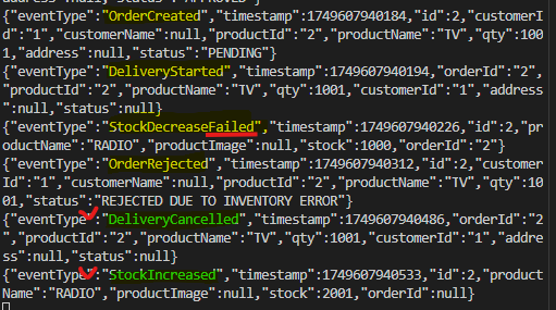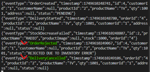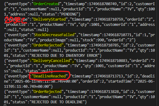추가로 중복 실행되면서 fail이 되었는데 reject이 되면서 OrderRejected 되면서 DeliveryCancelled가 된다. DeliveryCancelled 이 되면서 increase와 decrease가 둘 다 실행되게 된다.