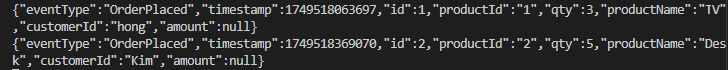 이때 Kafka로 전송되는 메시지는 JSON 형태입니다.