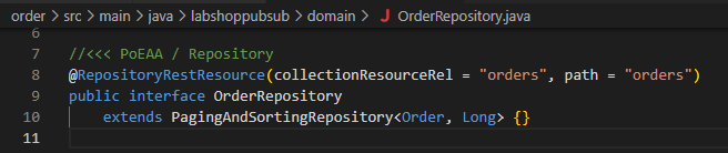 @RepositoryRestResource 를 통해서 Order라는 spring resourse를 Rest 로 변경한다.