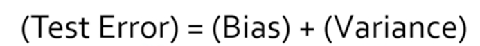 generalization error 혹은 test error를 낮추려면 bias와 variance가 모두 낮아야 한다.