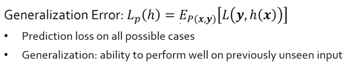 Generalization error은 training error와 달리 바로 구할 수 없고, 측정이 불가하며 validation을 통해서 예측할 수 밖에 없기 때문에 어렵다.