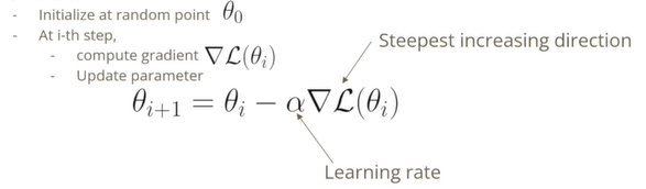 어디가 최소점일지 모르는 지점에서 시작해서 어디가 가장 가파르게 증가하고 감소하는 방향인지 gradient(미분값)를 계산한다.