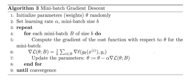 데이터를 하나 뽑는 것이 아니라, B라고 하는 batch로 데이터 b개를 뽑는다. b개를 뽑아서 b개에 대한 gradient를 평균 낸 것을 각 iteration(반복)에서 Gradient 삼아서 업데이트를 하는 것이다.