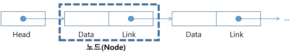 자료의 논리적인 순서와 메모리 상의 물리적인 순서가 일치하지 않고, 개별적으로 위차하고 있는 각 원소를 연결하여 하나의 전체적인 자료구조를 이룸.