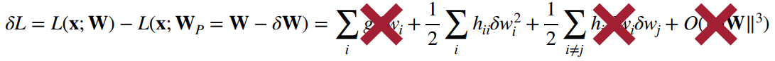 second-order based pruning은 2차항까지 유지하는 방법으로 위와 같이 수식이 정리될 수 있다.