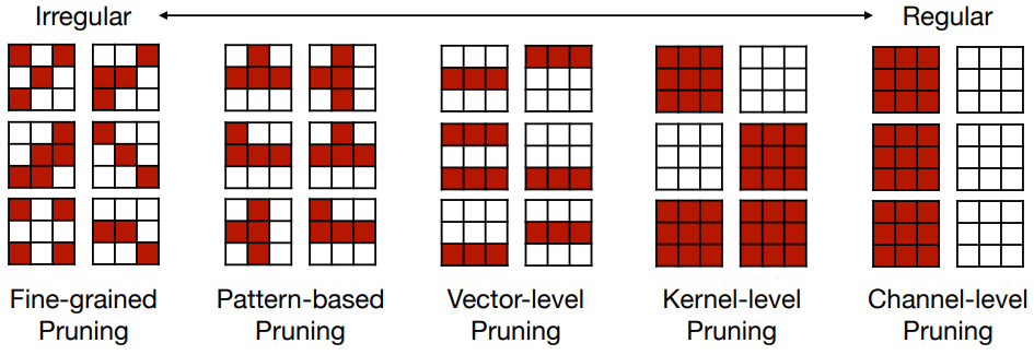 유연하게 원하는 파라미터만 pruning할 수 있지만, 불규칙하게 pruning되기 때문에 병렬처리를 위한 HW 가속이 매우 어렵다.