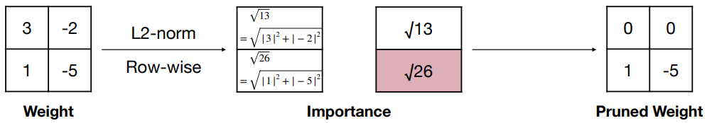 - row-wise pruning, l2-norm