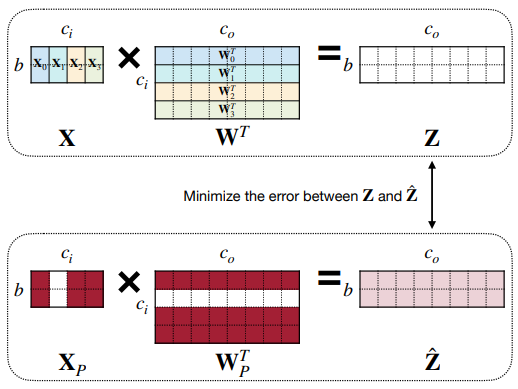전체가 아닌 각 layer에서의 원래의 output과 pruning된 이후의 output의 차이를 최소화하는 방식이다.