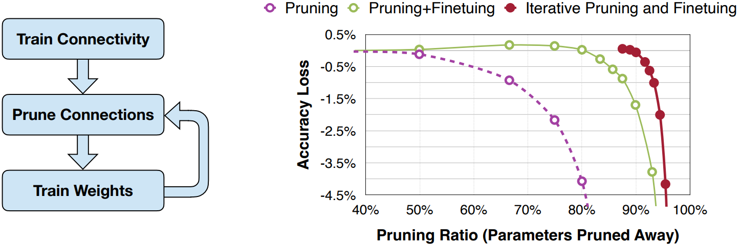 - pruning 비율이 높아질수록 accuracy 손실이 더욱 커진다.