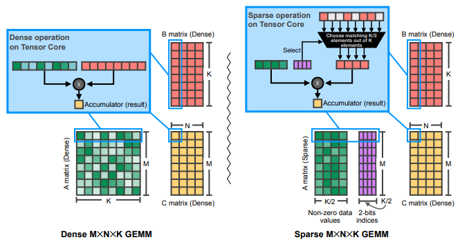 0이 아닌 가중치만 가져오고, 그 index로 activation에서 해당되는 값들만 가져와서 연산을 수행한다. 기존에 비해 1.8배 빠르다.