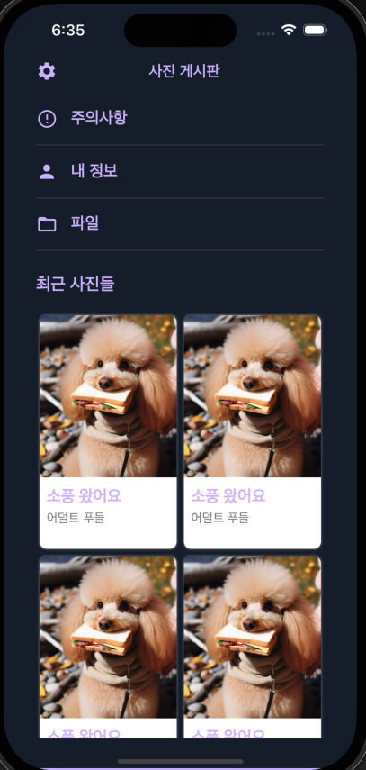 위의 설정아이콘이랑 제목은 row로 정렬해준 뒤에