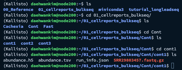 각각의 하위 디렉토리 안에는 abundance.h5, abundance.tsv 등등의 파일이 들어있는 것을 확인할 수 있습니다.