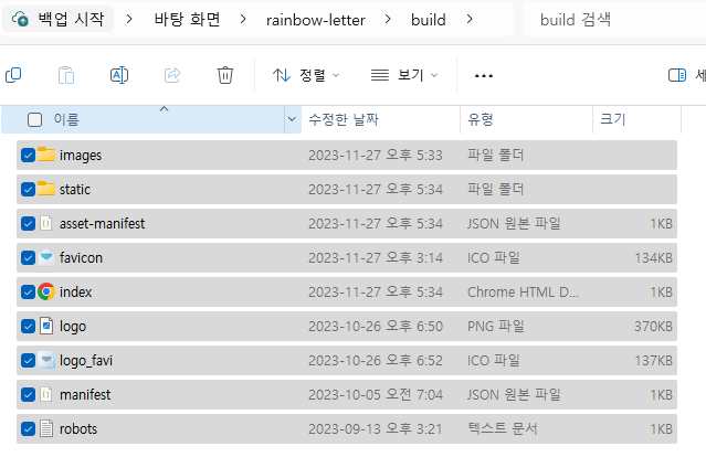 build 폴더 내에 있는 파일을 모두 업로드해준다.