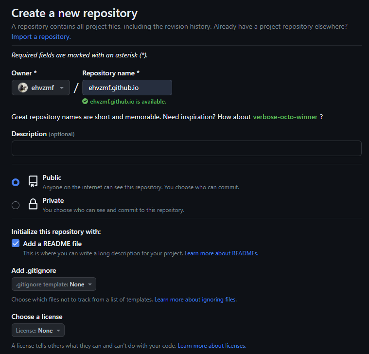 이름은 반드시 '깃허브 아이디'.github.io