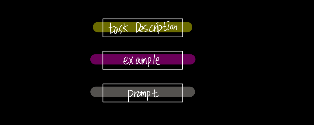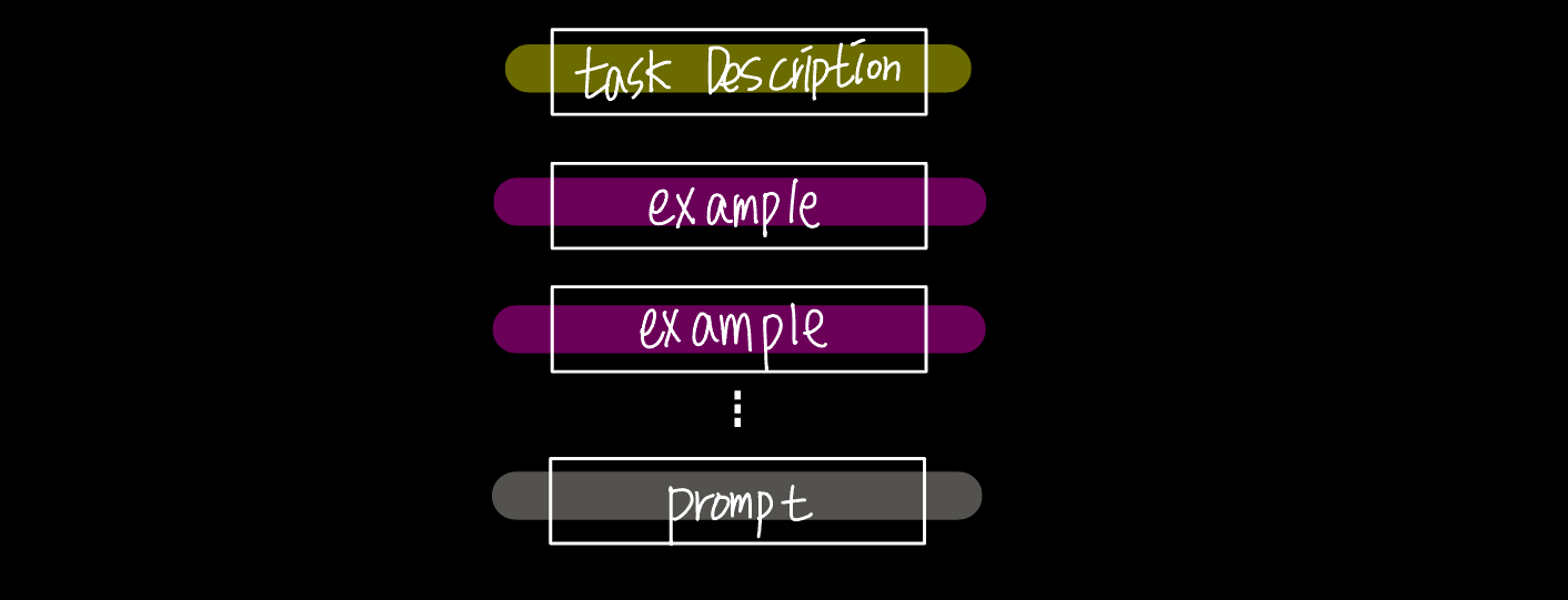 - In-Context Learning: 전혀 학습을 하지 않고, 사전 학습된 모델로 새로운 문제를 해결 시, 예시 제공