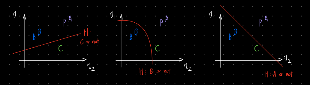 3개의 각각 다른(서로 독립된) binary classification으로 구현 가능