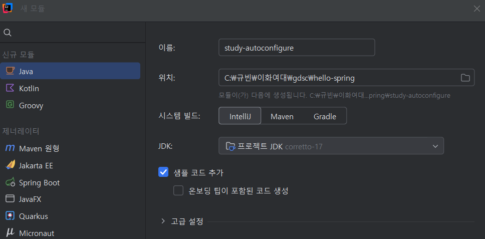 자동 설정 모듈 생성