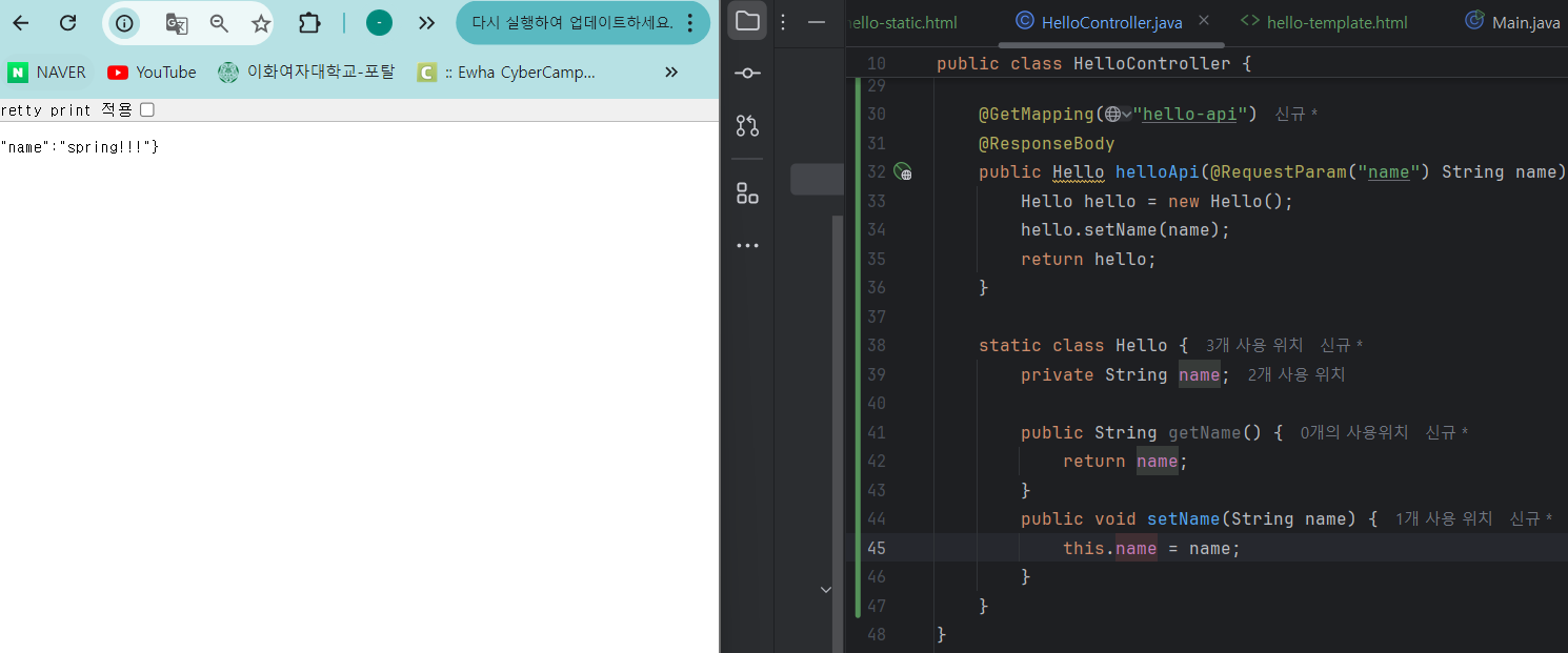 4. {name: spring} 웹 브라우저에 반환