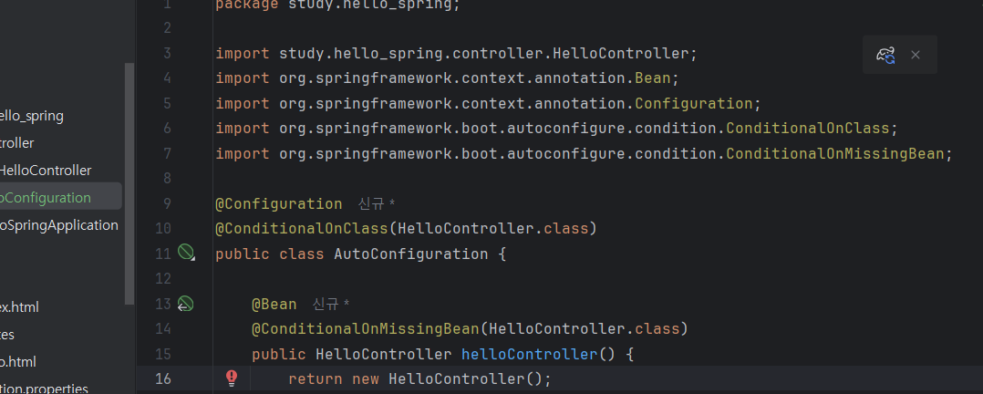 resources에 META-INF 디렉토리 만들고, 그 안에 spring.factories 파일 만들어 자동 설정 등록