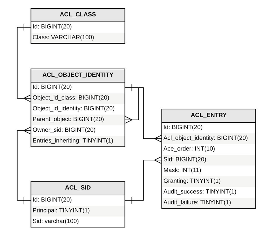 (Spring Security는 spring-security-acl 라이브러리 제공)