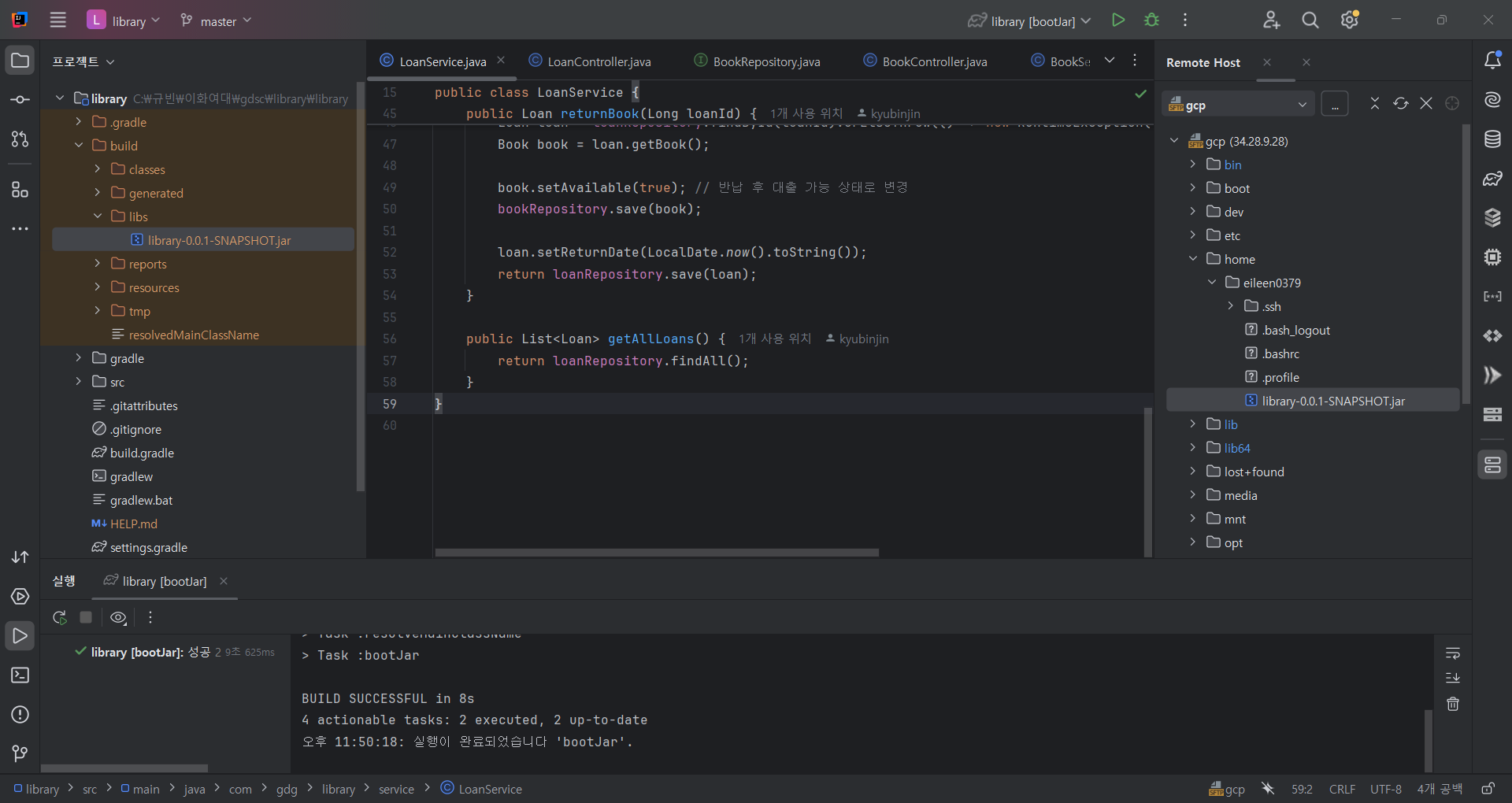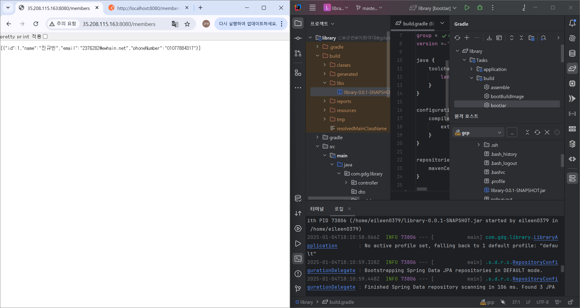 jar 파일 생성하여 gcp/home/eileen0379 안으로 드래그