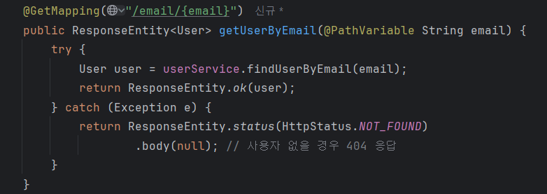 email로 사용자 찾아 있으면 200 반환, 없으면 404 반환하는 코드 추가
