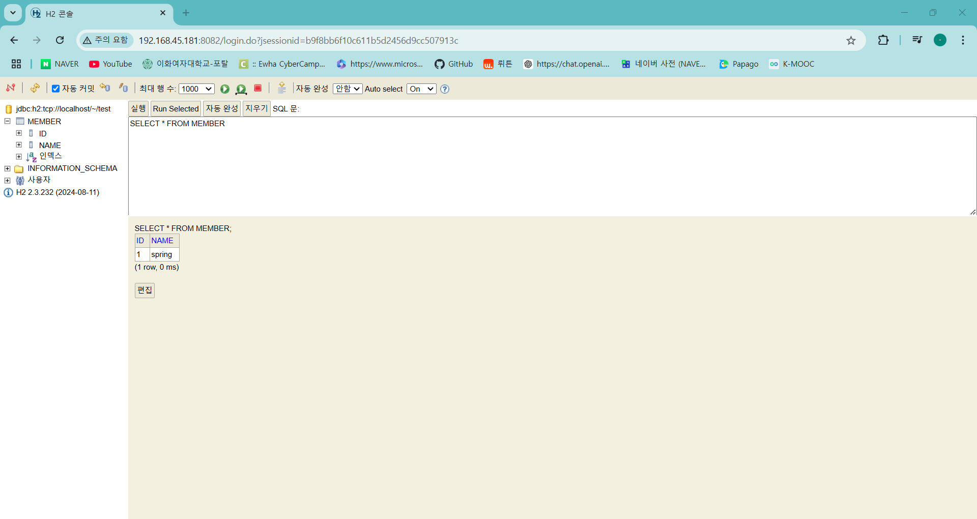 • INSERT 쿼리 실행하여 데이터 삽입 가능