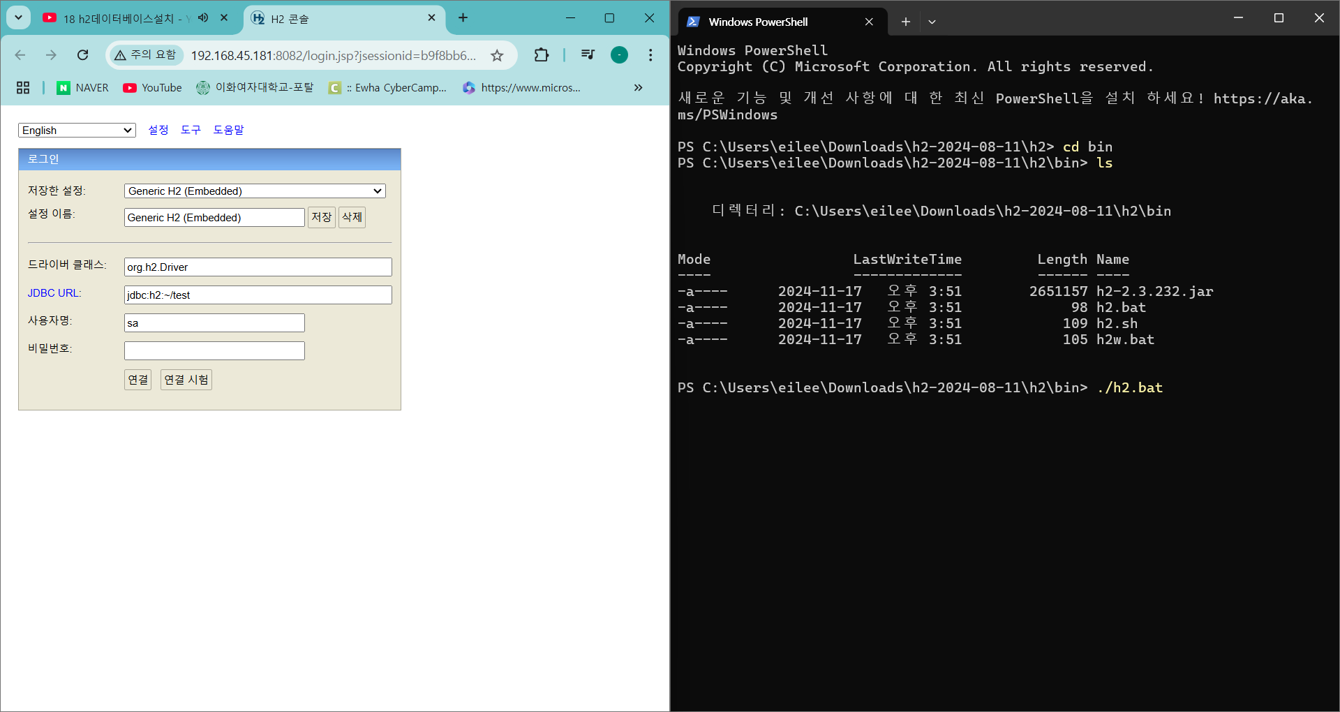 • 터미널에서 h2\bin 들어가서 ./h2.bat 입력