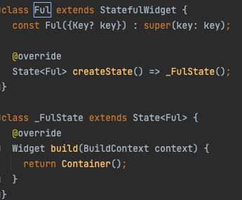 위에서 말한대로 createState로 State를 안에 또 만들어준다. 저기 _Fulstate가 바로 그 위젯이다.