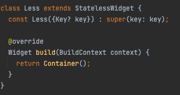 +StatefulWidget, StatelessWidget를 클릭해서 오른쪽 마우스 누르면 자동완성으로 ful->less, less->ful로 변경해주는 기능 있음