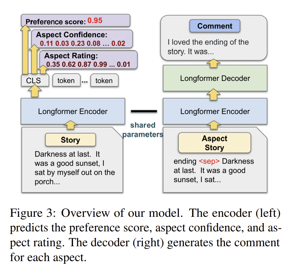 Longer former encoder는 'input: 스토리' → '각 token의 context를 포함한 고차원 vector(즉, 스토리의 중요한 포인트를 가지고 있는 feature vector)'로 변환하는데, 이를 통해 Rating함.