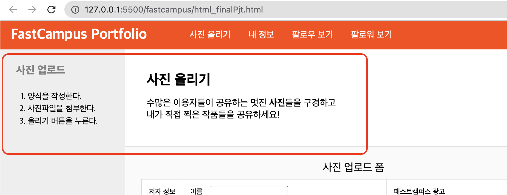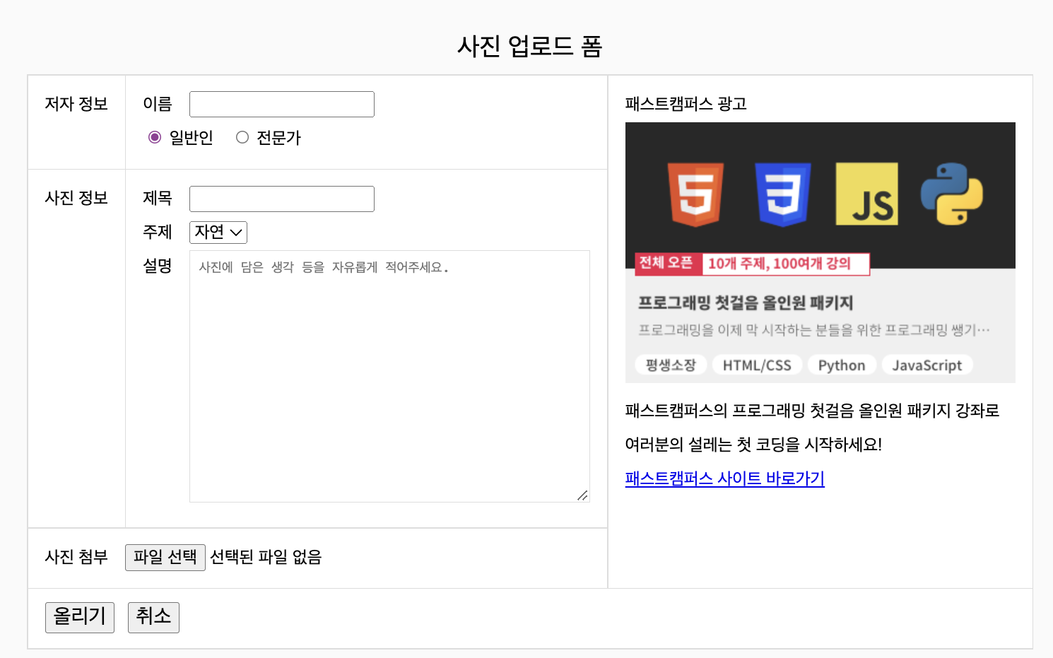 <caption>사진 업로드 폼</caption>