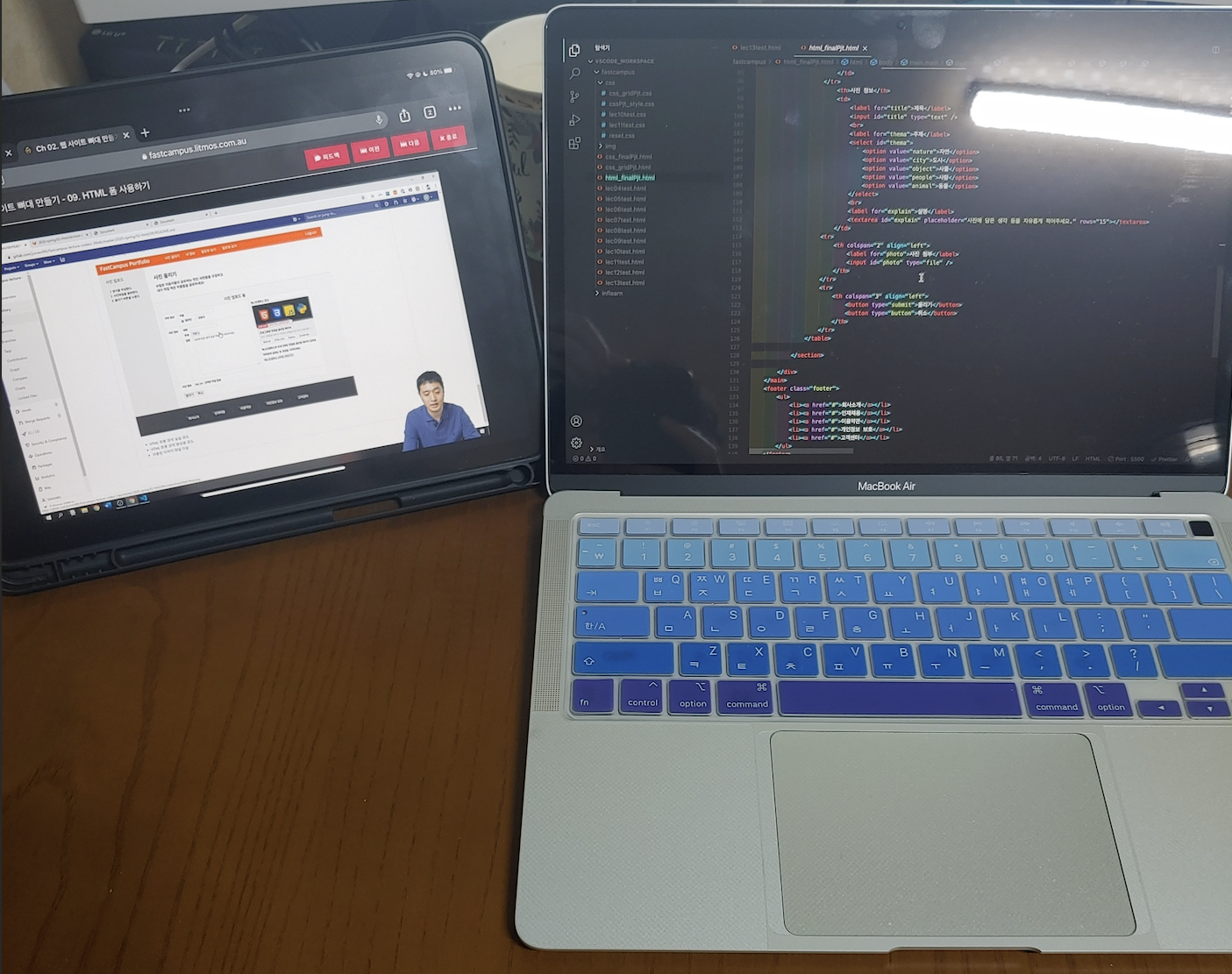 2주차 강의는 HTML 뼈대 만들기 내용으로 body태그 내에 작성되는 HTML기본 태그 위주의 강의였다. 주로 사용하는 div태그와 class명을 잘 주어야 하는 것, 좋은 코드를 위해 시맨틱 태그를 잘 활용해야 하는 점을 숙지하였다. 과제로 주어진 코드에 빈칸을 채우는 형식으로 aside클래스 부분 section intro클래스 부분, 테이블을 이용한 section form 클래스 부분을 만들어 보았다.
