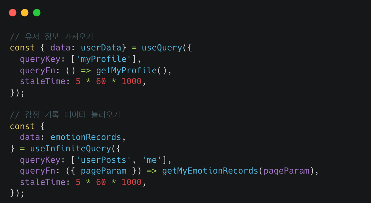 마이페이지와 프로필 수정 페이지에서 불필요한 API 호출을 줄이기 위해 TanStack Query의 staleTime