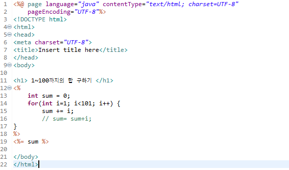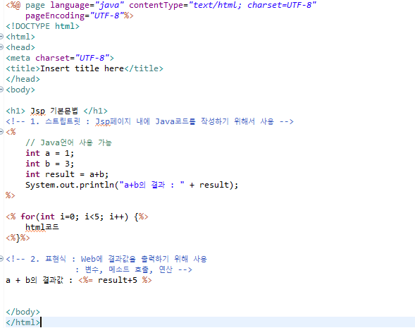 <!-- 1. 스트립트릿 : Jsp페이지 내에 Java코드를 작성하기 위해서 사용 -->