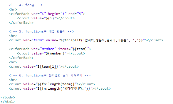 <c:set var="team" value="${fn:split('안서혁,정윤오,임다이,이상훈', ',')}"></c:set>