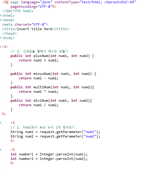 -스트립트릿 : Jsp페이지 내에 Java코드를 작성하기 위해서 사용