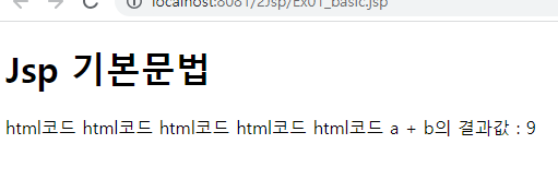 <!-- 2. 표현식 : Web에 결과값을 출력하기 위해 사용