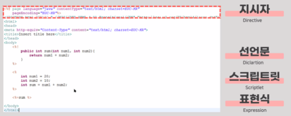 -지시자 : Servlet으로 변환할 때 필요한 정보들을 기술