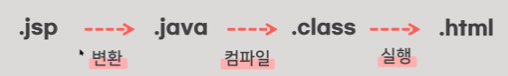 -Jsp → Servlet → class → HTML 으로 변환되어 실행