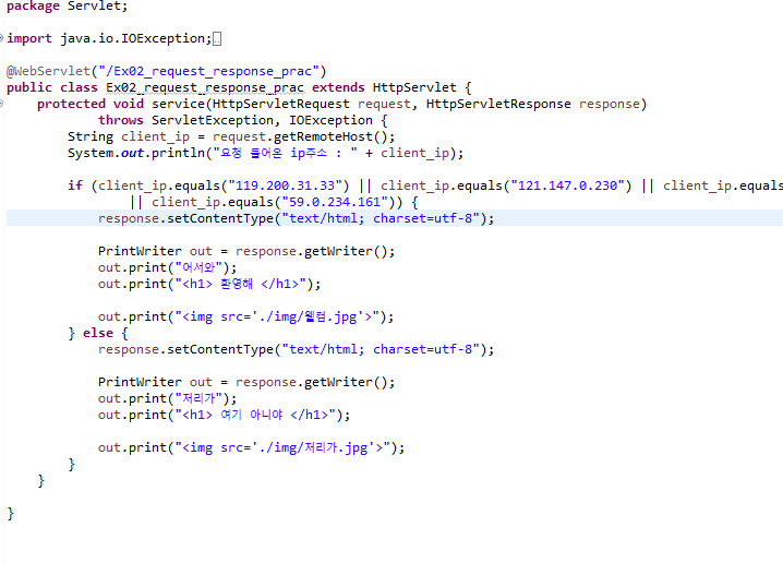 if (client_ip.equals("119.200.31.33") || client_ip.equals("121.147.0.230") || client_ip.equals("59.0.234.65")