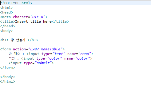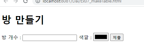 // 방 개수, color 받아와서 table형태로 웹에 출력 -> 반복문
