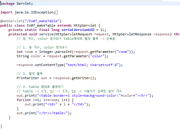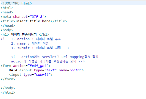 // html페이지에서 이 servlet을 요청 -> 요청할 때 data를 가지고 왔음