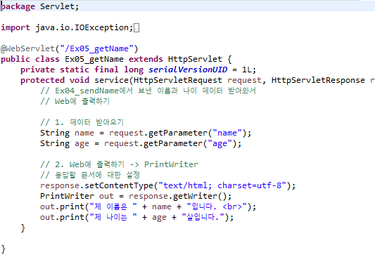 -Ex04_sendName에서 보낸 이름과 나이 데이터 받아와서 Web에 출력하기