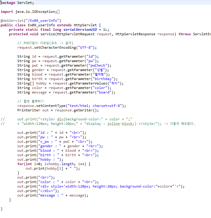 // POST방식 디코딩 방법 : 데이터가 담긴 request객체에