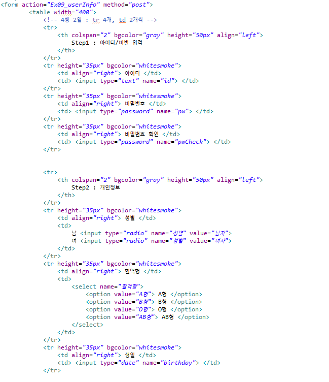 <!-- 4행 2열 : tr 4개, td 2개씩 -->