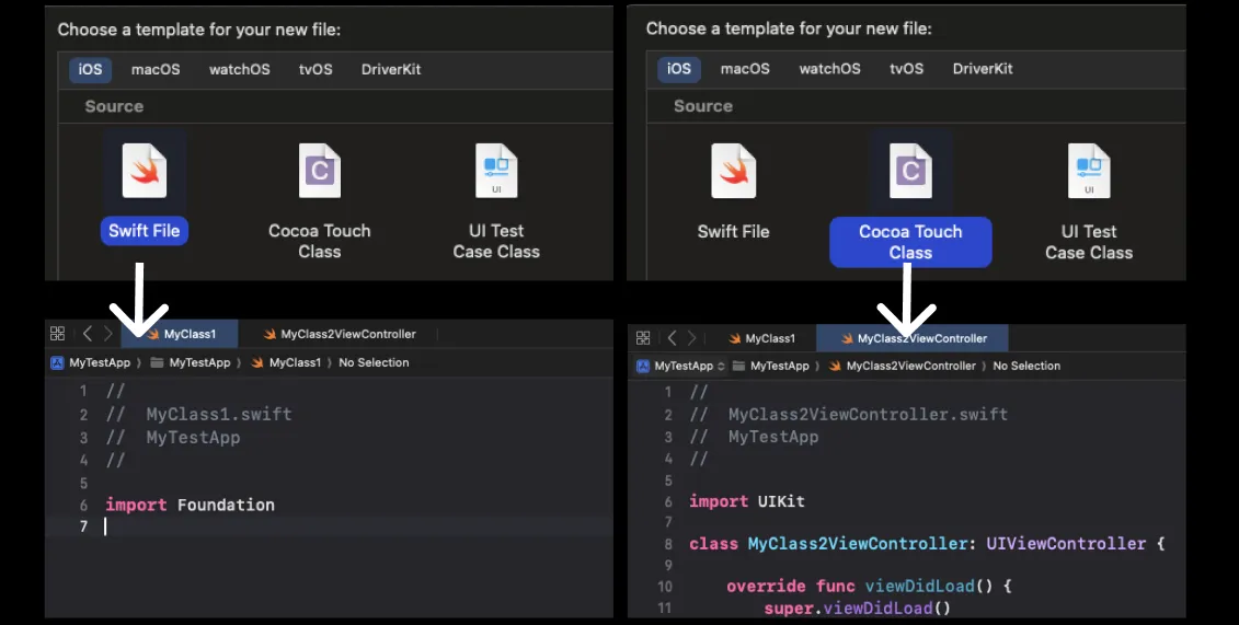 Cocoa Touch Class로 생성하면 import UIKit이 되어있는 상태로 생성